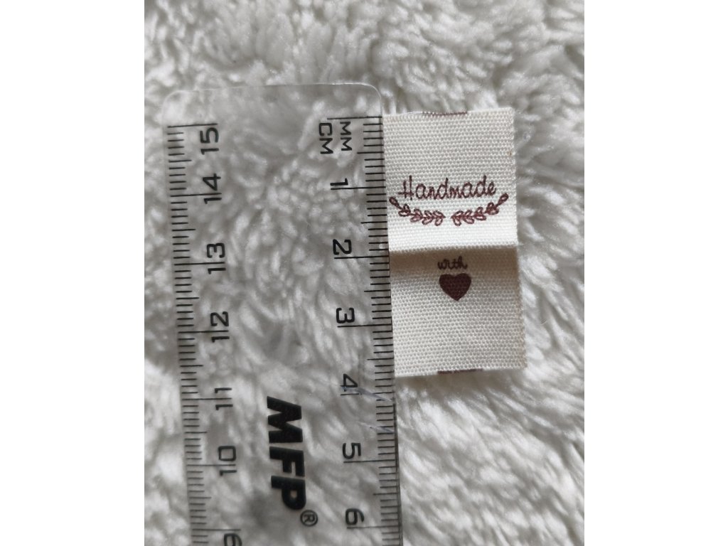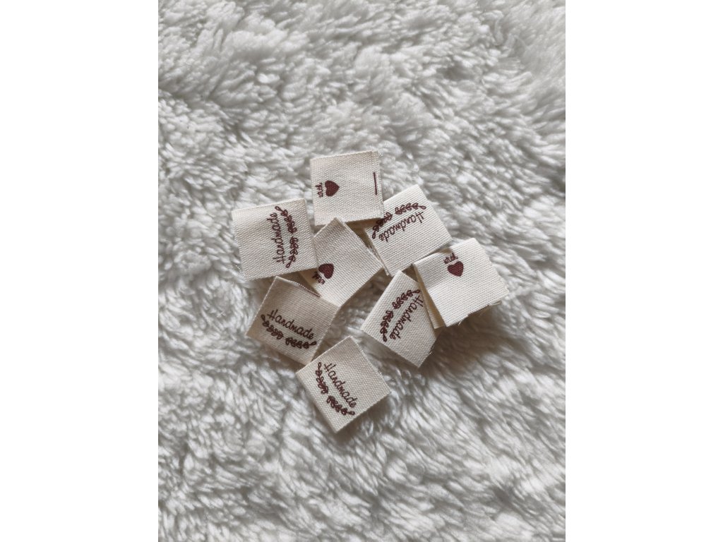 Látkový štítek do švu s nápisem Handmade , vhodné k označení a ozdobení Vaších výrobků.