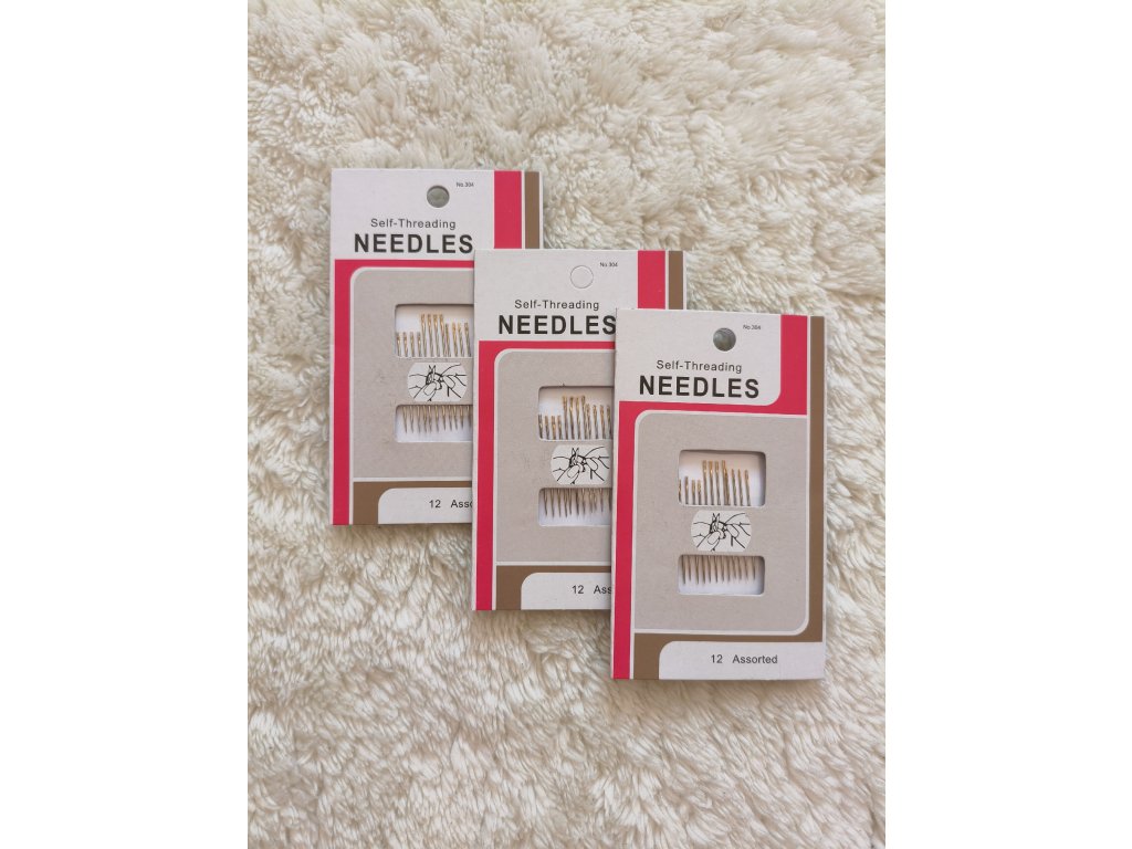 Jehly mají speciálně tvarované ouško, nit navlékáme prostým nasunutím shora ouška, malá pojistka zajistí, že ani při provlékání hustou tkaninou nit z jehly nevyklouzne.